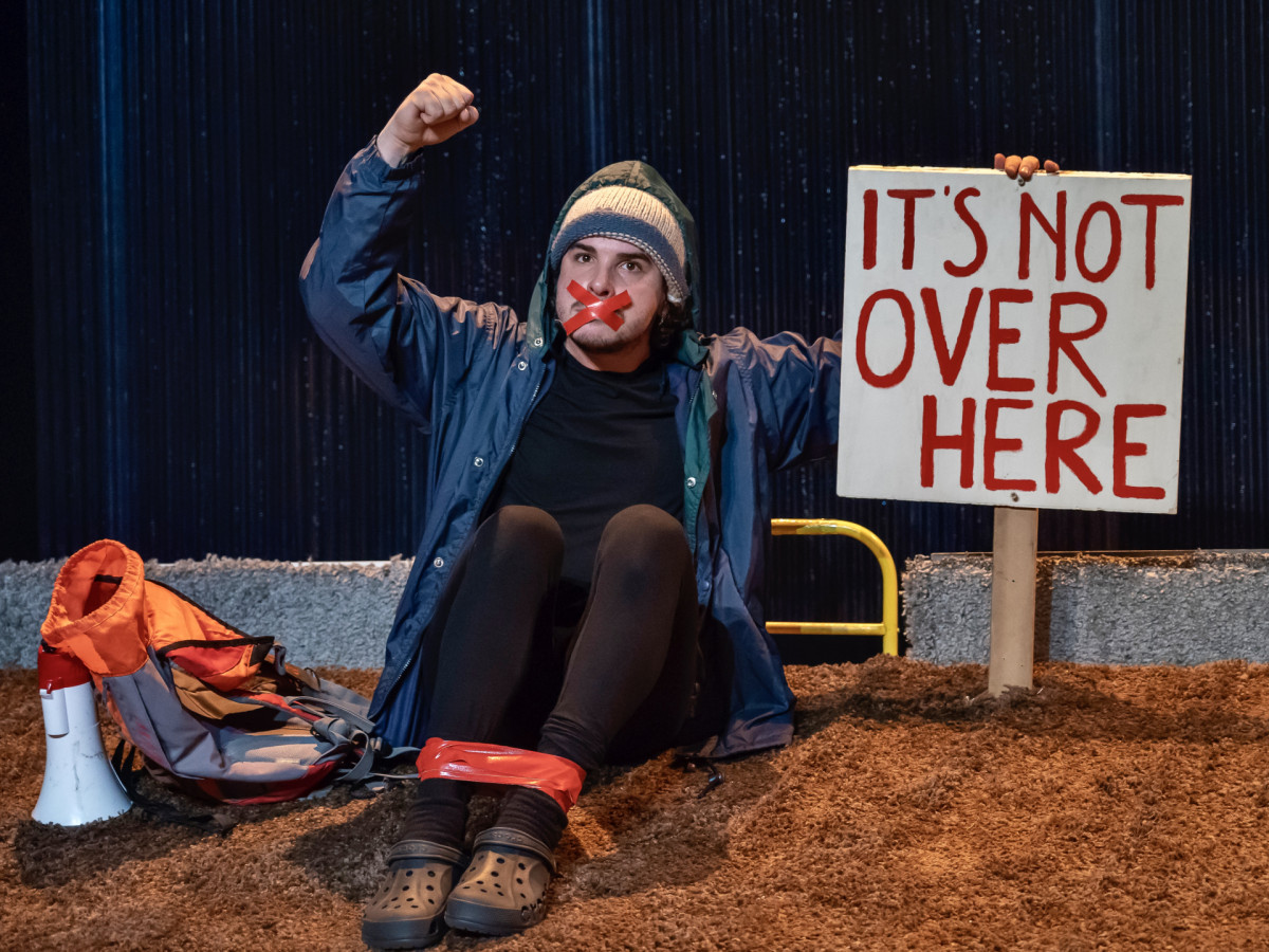 OVER HET EINDE is een fluffy, speculatief en hoopvol verhaal met als hoofdrol onze ‘versleten’ planeet: de Aarde. Een pluizige maquette van het einde van de wereld. Een abstracte, sciencefiction komedie over dat wat niet mee mag op de raket. Een dystopisch feestje met alles wat achterblijft.