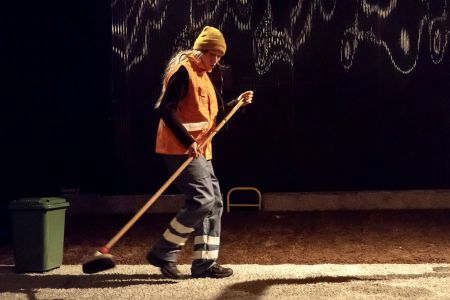 OVER HET EINDE is een taalloze, beeldende vertelling, met als ‘wollen’ draad het verhaal van een specifieke plek op aarde. Met behulp van visdraad, plakband en doodgewone objecten onderzoeken we samen met de toeschouwer naar de poëzie van het alledaagse, waarin onze menselijke onhandigheden en tekortkomingen als katalysator van de ecologische crisis worden neergezet.