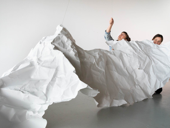 "Uit een boekenkast toveren Van Hullebusch en Eyckerman de ene na de andere toverachtige wereld tevoorschijn. Haast woordeloos vouwt, knipt en scheurt het duo dat het een lieve lust is. Intussen kijken de allerjongsten ademloos toe terwijl een papieren zon opgaat, er in de schaduw een berglandschap ontstaat of de wind door de uitgeknipte bomen blaast. Papierlied is een fijnzinnige ode aan de verbeelding die zowel jong als oud bekoren kan."