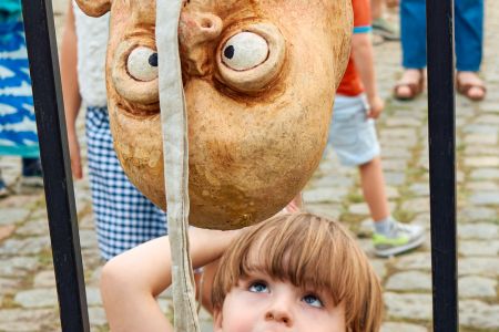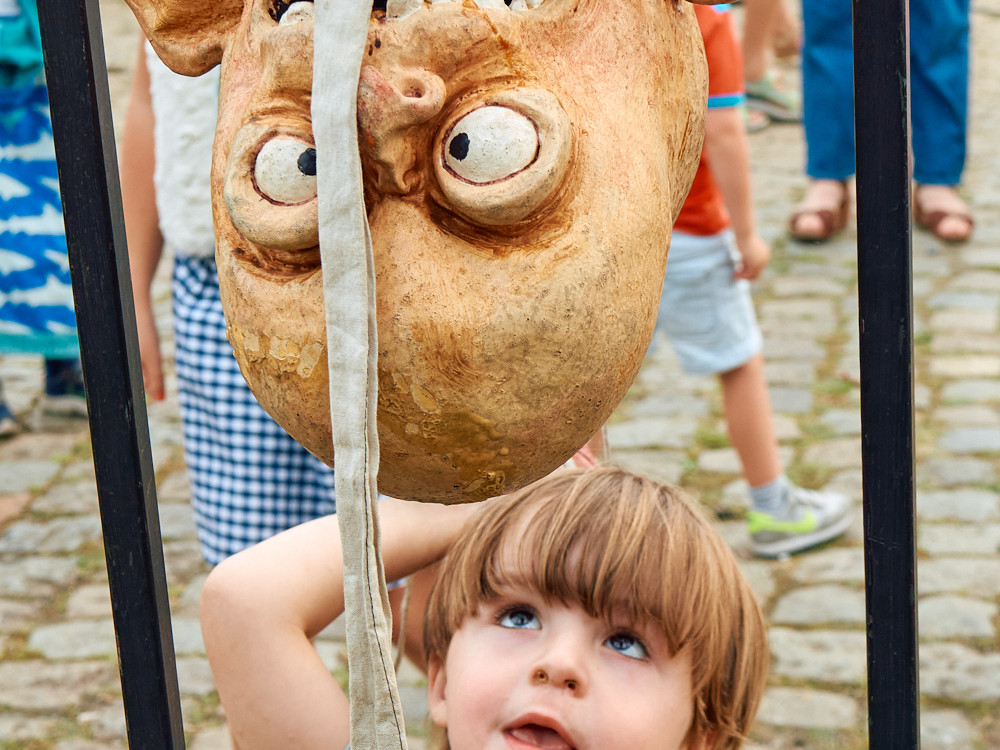 KOPPEKE ROLLEN Groteske koppen rollen te voorschijn als jij met je schoenen gooit. Wel goed mikken want alleen in de roos rinkelen de bellen en rollen de koppen. Een behendigheidsspel dat ook voor vaders en moeders moeilijk kan zijn, vooral als je ze een blinddoek opdoet.