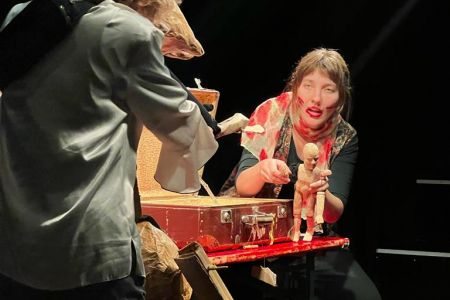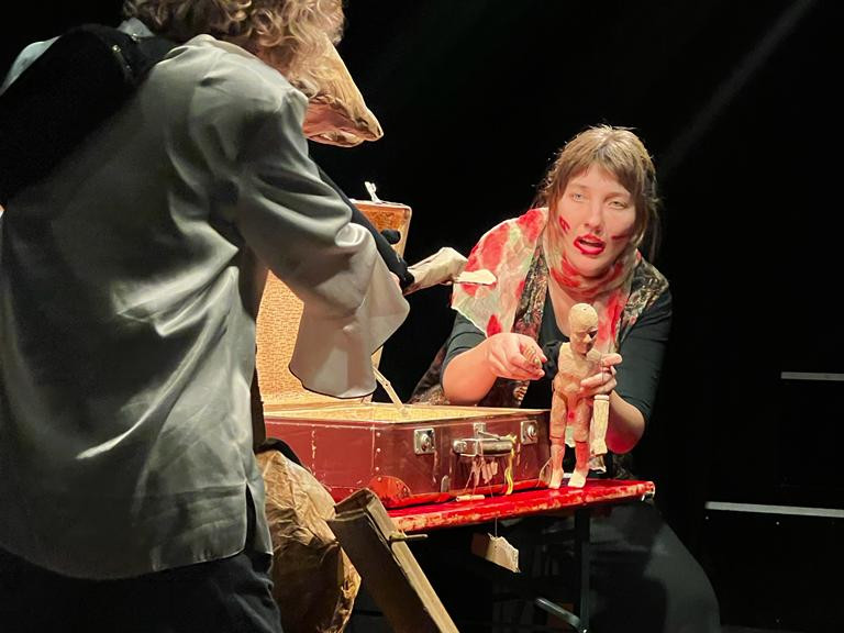 Roos Buskes en Tuesday Wulterkens! Roos studeerde performance, maar kiest hierin resoluut voor figurentheater. Tuesday studeerde Storeytelling. Beiden afkomstig uit Nederland, maar momenteel gevestigd in Gent. Ze speelden met deze voorstelling al op menig buitenlands figurentheaterpodium. Maar nog maar zelden in Vlaanderen. En dat is zonde!